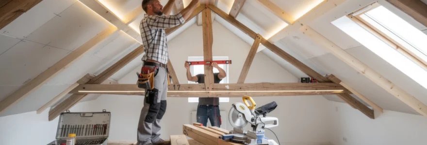 L’équerre de charpentier, quant à elle, garantit la perpendicularité des solives par rapport aux murs pignons ou aux rampants. En combinant ces deux outils, vous vous assurez de la cohérence géométrique de l’ensemble, un peu comme on pose un carrelage à partir d’un axe bien droit. N’hésitez pas à contrôler régulièrement l’alignement en cours de pose : quelques millimètres d’écart au départ peuvent se transformer en plusieurs centimètres en bout de pièce, surtout dans des combles de grande longueur.
